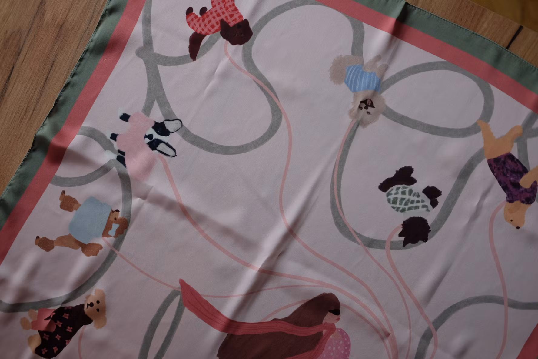 Scarf - Dog walk (pink/green)
